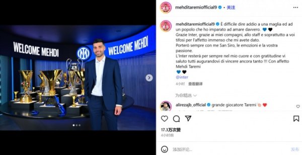 塔雷米告异国米:尤其感谢国米球迷,祝贺国米当年得回更多荣誉