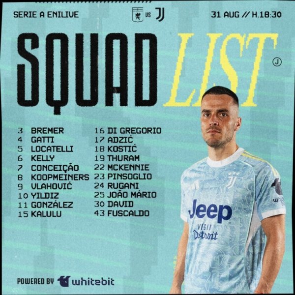 尤文本轮大名单:布雷默镇守后防,伊尔迪兹领衔锋线,DV9入选