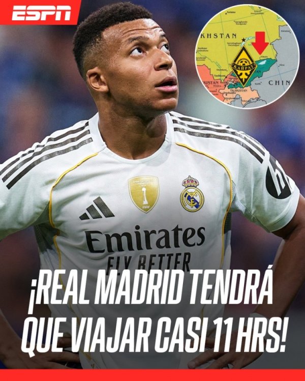 ESPN:皇马至少飞10小时50分钟才气抵达阿拉木图,高出超8000公里