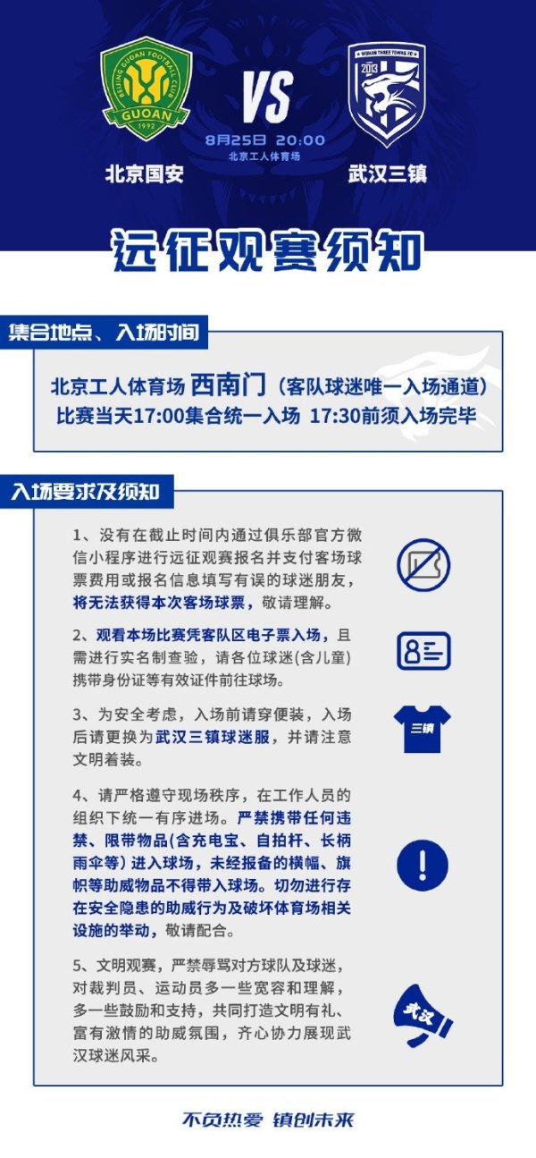 中超联赛第22轮,武汉三镇客场对阵北京国安远征不雅赛应知