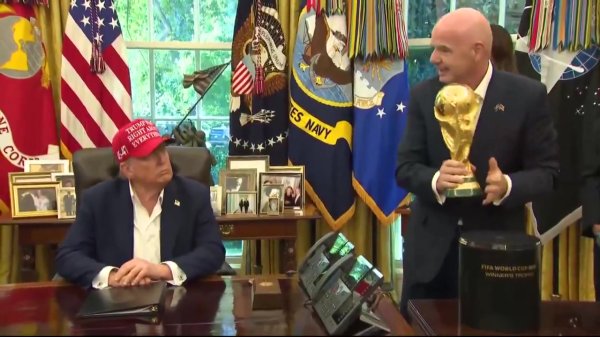 因凡蒂诺说不错摸摸鼎力神杯, 特朗普嘲谑:能保留吗别指望还你